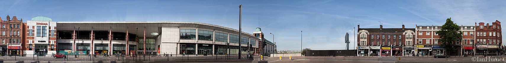 The O2 Centre on the Finchley Road in Camden was photographed as part of a commission to show the impact of new buildings on the area. The image is made up of over 150 photographs taken along a 320m stretch of road.